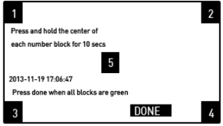 Using the Touch Screen Calibration option (Figure 51), you will be able to set up the CAT-100 touch screen for optimal touch response. Using a stylus, press and hold the center of each numerical block for a period of 10 seconds, as instructed on the screen. Once all of the blocks have turned green, press the DONE button.
